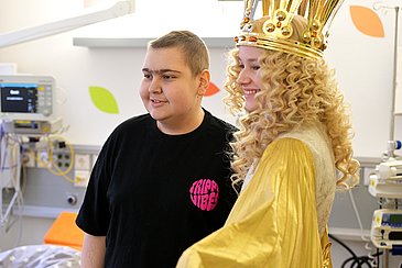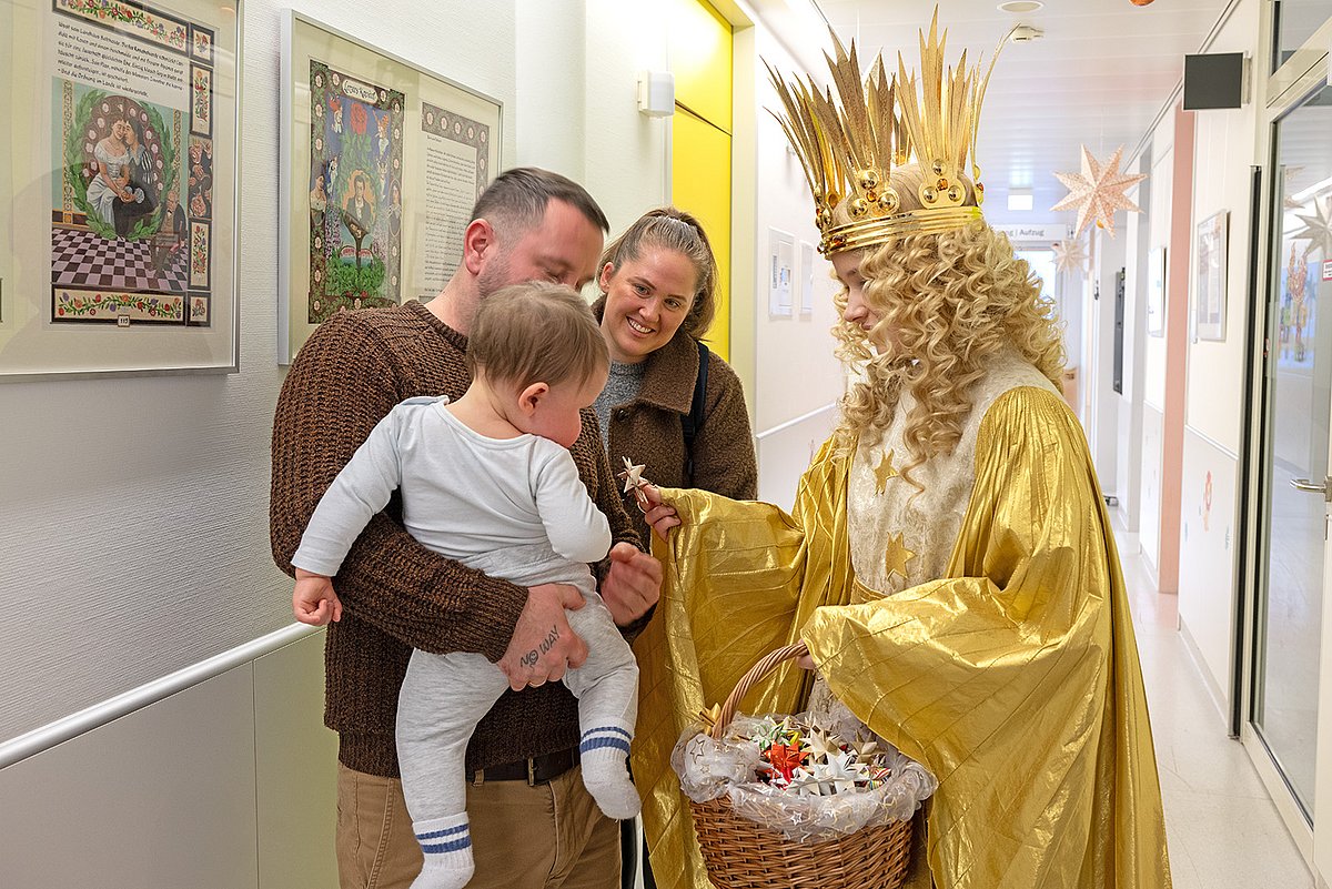 Genauso wie die Blaulichtaktion gehört auch der Besuch des Nürnberger Christkinds zur Vorweihnachtszeit am Uniklinikum Erlangen dazu. Im traditionellen Sternengewand und mit goldener Lockenpracht ging Nora Falk auf den Stationen der Kinderklinik von Zimmer zu Zimmer und nahm sich Zeit für die jungen Patientinnen und Patienten. Sie wünschte nicht nur ein schönes Fest und gute Genesung, sondern nahm auch noch Last-Minute-Wunschzettel entgegen.