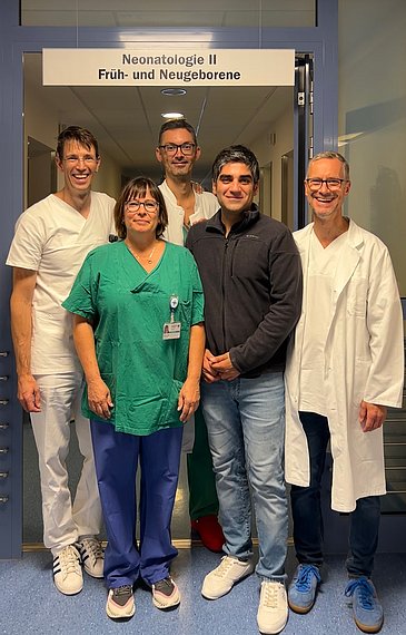 Dr. Bonakdar, Prof. Morhart und Dr. Frederick Krischke, Oberarzt der Anästhesiologischen Klinik (Direktor: Prof. Dr. Roland C. E. Francis) des Uniklinikums Erlangen, entwickeln SMART-NEO gemeinsam mit einem interdisziplinären Team: Beteiligt sind unter anderem der Lehrstuhl für Regelungstechnik (Prof. Dr.-Ing. Knut Graichen), das Department Artificial Intelligence in Biomedical Engineering – AIBE (Prof. Dr. Andreas Kist), die Strömungsmechanik (Prof. Dr.-Ing. Stefan Becker) und die Neonatologie (Leiter: Prof. Dr. Heiko Reutter) der Kinder- und Jugendklinik (Direktor: Prof. Dr. Joachim Wölfle) des Uniklinikums Erlangen. Genau dieses Zusammenspiel macht SMART-NEO so besonders: „Es ist schön zu sehen, wie wir gemeinsam im Team arbeiten und dadurch ganz neue Möglichkeiten entstehen“, betont Prof. Morhart. „Unsere neue Technik ist nur durch die Verbindung von klinischem Wissen, technischer Innovation und KI möglich. Gerade dieses Zusammenspiel macht das Projekt einzigartig.“